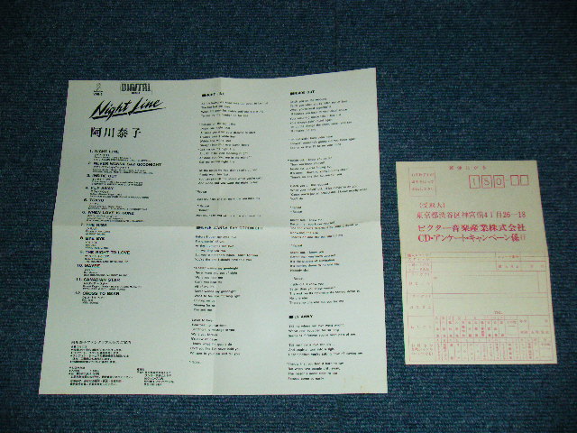 阿川泰子 YASUKO AGAWA- NIGHT LINE (Ex+++MINT) / 1984 JAPAN ORIGINAL Used CD