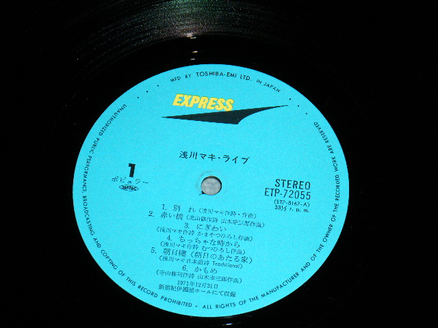 浅川 マキ MAKI ASAKAWA - 浅川 マキ ライブ MAKI II : LIVE (MINT-/MINT-) / 1975 VersionJAPAN REISSUE Used LP With BOOKLET [EXPRESS / TOSHIBA EMI 東芝EMI ETP-72055]