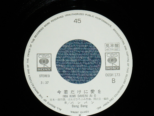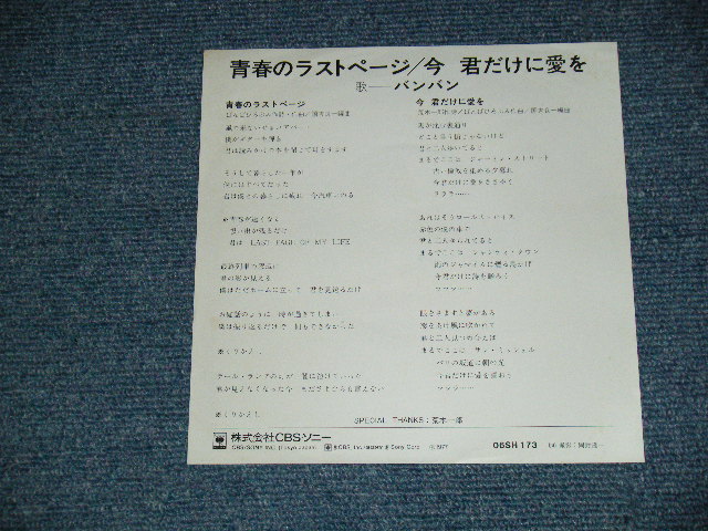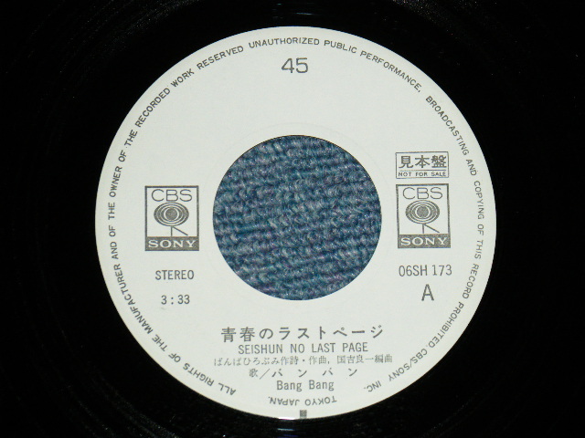 バンバン BANG BANG - A)青春のラストページ B)今 君だけに愛を (MINT-/MINT) / 1977 JAPAN ORIGINAL "WHITE LABEL PROMO" Used 7" シングル Single [CBS SONY 06SH-173]