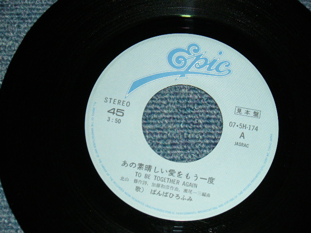 ばんばひろふみ HIROFUMI BANBA - A)あの素晴らしい愛をもう一度 B) 雨のハイウエイ (Ex/MINT TOFC, TEAR) / 1983 JAPAN ORIGINAL "PROMO" Used 7" シングル Single [EPIC SONY 07・5H-174]