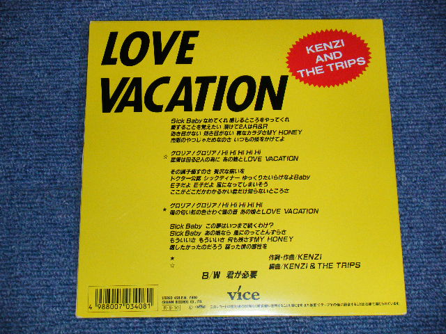 KENZI & THE TRIPS - A) Love Vacation B) 君が必要 (MINT/MINT) / 1988 JAPAN ORIGINAL "PICTURE DISC" Used 7" Single シングル