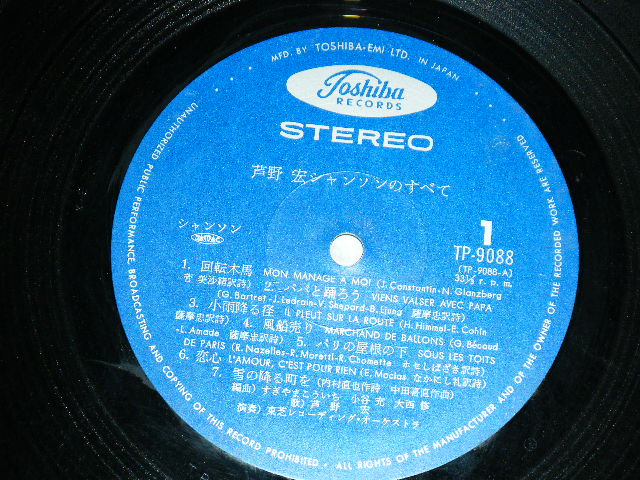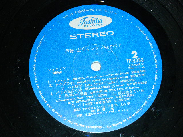 芦屋 宏 HIROSHI ASHIYA - シャンソンのすべて(With AUTOGRAPHED at Back Cover 直筆サイン入り (Ex+++/MINT- VISUAL GRADE) / JAPAN ORIGINAL Used LP With OBI with BACK ORDER SHEET[TOSHIBA EMI   東芝 EMI   TP-9088]