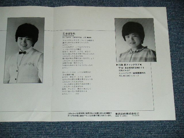 川島 恵 MEGUMI KAWASHIMA - A)ザ・サンシャイン・ボーイズ The Sunshine Boys B) 乙女離れOtome Banare Ex+++/MINT) /1982 JAPAN ORIGINAL Used 7"45 rpm Single[TOSHIBA TP-17340]
