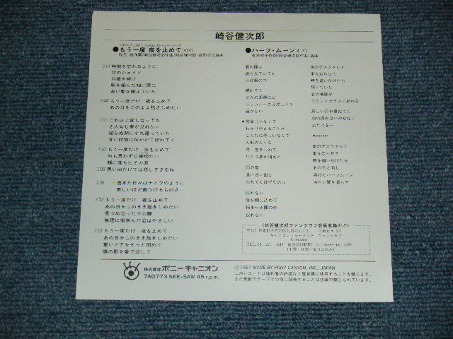 崎谷健次郎 KENJIRO SAKIYA -A)もう一度夜を止めて B) ハーフ・ムーン (Ex+/MINT- STOFC) / 1987.9.17. JAPAN ORIGINAL "PROMO ONLY" Used 7" 45rpm Single[CANYON 7A0773]