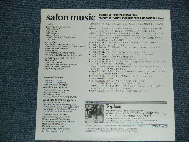 サロン・ミュージック SALON MUSIC - A) TOPLESS B) WELCOME TO HEAVEN (MINT/MINT) / 1985 JAPAN ORIGINAL "PROMO ONLY" Used 7" Single シングル[CANYON PR-81]