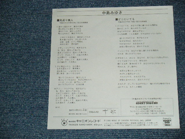 中島みゆき MIYUKI NAKAJIMA - A)見返り美人 B)どこにいても (MINT-/MINT) / 1986 JAPAN ORIGINAL Used 7" Single [PONY CANYON 7A0629]