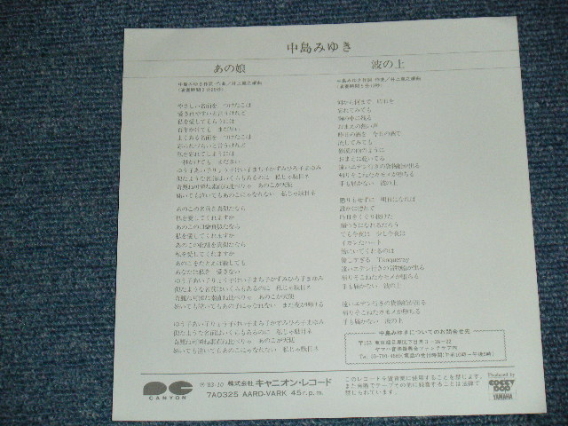 ARTIST : | 中島みゆきMIYUKI NAKAJIMA | TITLE : | A)あの娘 B)波の上 |