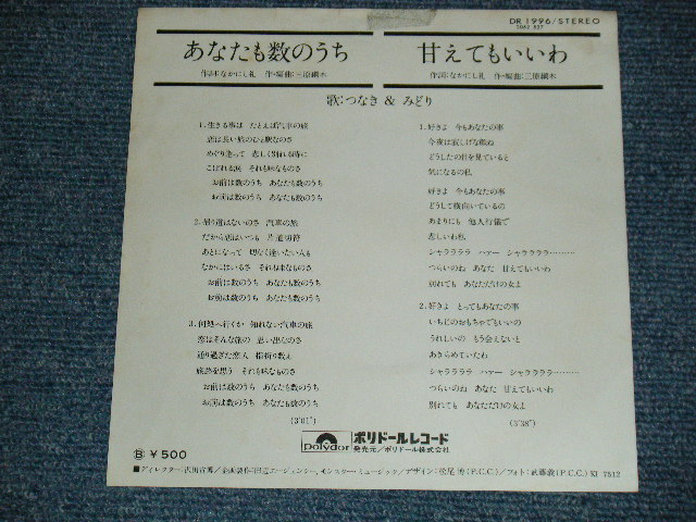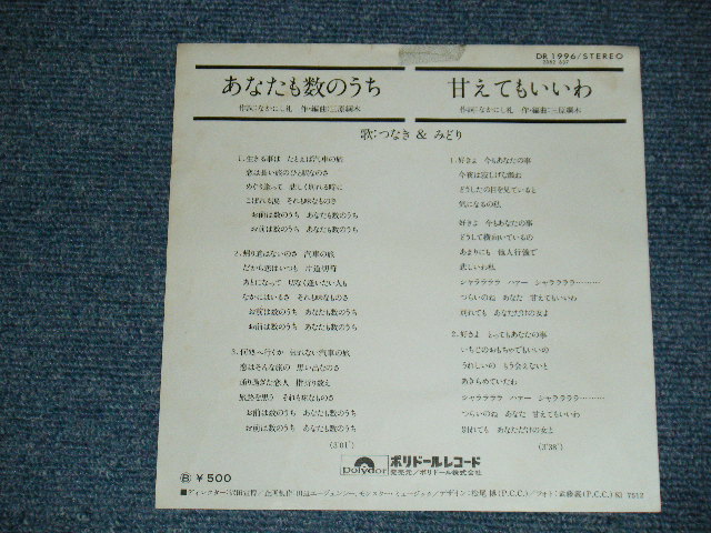 つなき&みどり TSUNAKI & MIDORI - A) あなたも数のうち B)甘えてもいいわ (Ex+/MINT-) / 1975 JAPAN ORIGINAL "WHITE LABEL PROMO" Used 7" Single[POLYDOR DR-1996]
