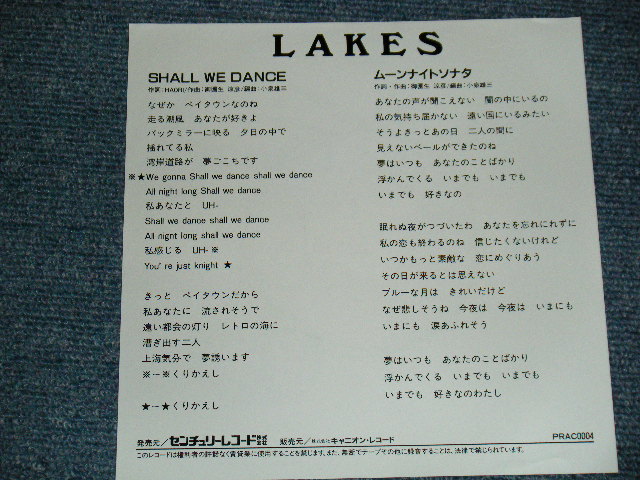 LAKES - A)SHALL WE DANCE B)MOON NIGHT SONATA (Ex++/MINT- SWOFC) / 1988 JAPAN ORIGINAL "PROMO ONLY" Used 7" Single[CENTURY RECORDS / TEICHIKU PRAC-0004]