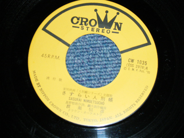 渡瀬恒彦 TSUNEHIKO WATASE - A)さすらい人別帳 B)掟 (Ex++/Ex+++) / 1970 JAPAN ORIGINAL Used 7" Single シングル[CROWN CW-1035]