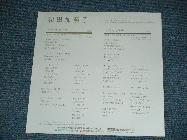 ARTIST : | 和田加奈子 KANAKO WADA | TITLE : | A) パッシング・スルー B) 冬のサブリナ |