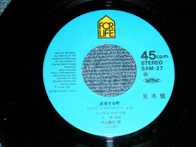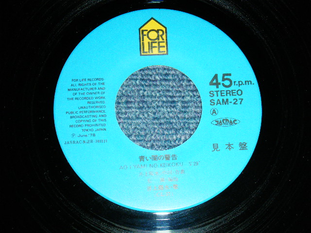 井上陽水 YOSUI INOUE - A) 青い闇の警告 B) 迷走する町(MINT-/EX+++) / 1978 JAPAN ORIGINAL "PROMO ONLY" Used 7" Single [FOR LIFE SAM-27]