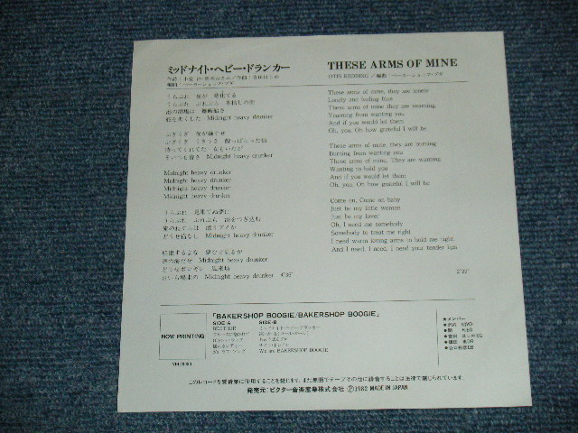 ARTIST : | ベイカーショップ・ブギ BAKERSHOP BOOGIE | TITLE : | A) ミッドナイト・ヘビー・ドランカー MIDNIGHT HEAVY DRUNKER B) THESE ARMS ARE MINE |