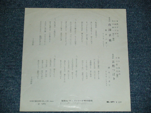 藤本三重子 MIEKO FUJISAWA - A) 南国哀歌 B)哀愁つばき(Ex/Ex+) / 1965 JAPAN ORIGINAL Used 7"SINGLE[KING BS-271]