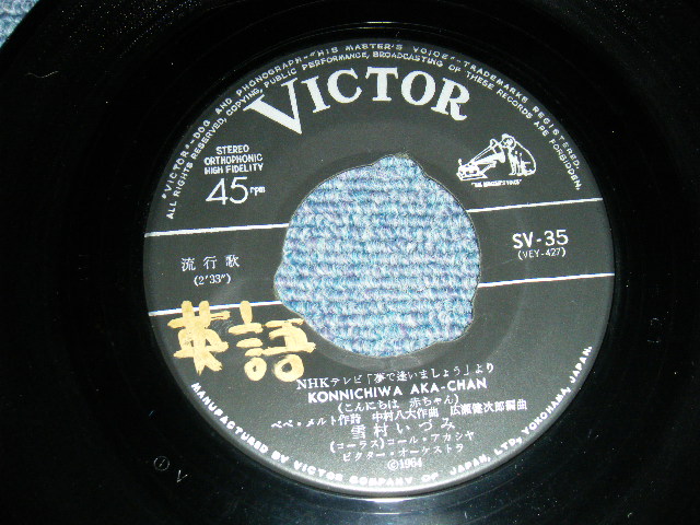 雪村いづみ Izumi Yukimura - A) KONNICHIWA AKA-CHAN (ENGLISH) B) こんにちは 赤ちゃん(JAPANESE) (Ex++/Ex++ BELL MARK CUT, NO CENTER, WOFC, WOL) / 1964 JAPAN ORIGINAL Used 7"SINGLE[VICTOR SV-35]