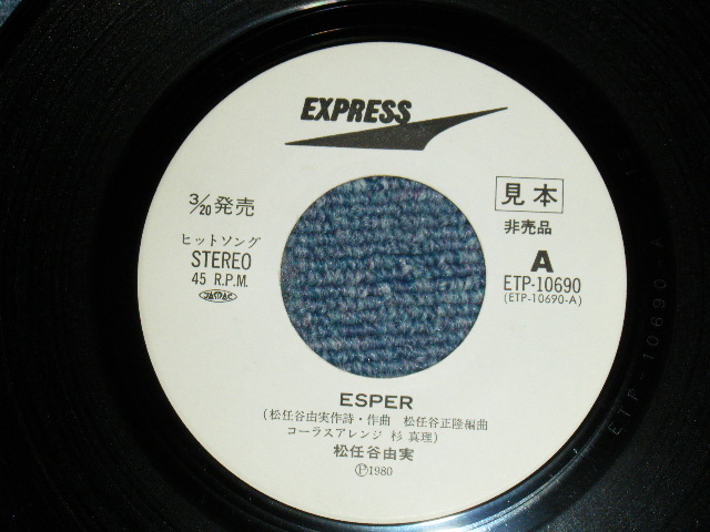 松任谷由実 YUMI MATSUTOUYA YUMING - A) エスパー ESPER B) よそゆき顔で (Ex+/Ex+ BB for PROMO, WOFC) / 1980 JAPAN ORIGINAL "WHITELABEL PROMO" Used 7" シングル[東芝 EXPRESS TOSHIBA ETP-10690]