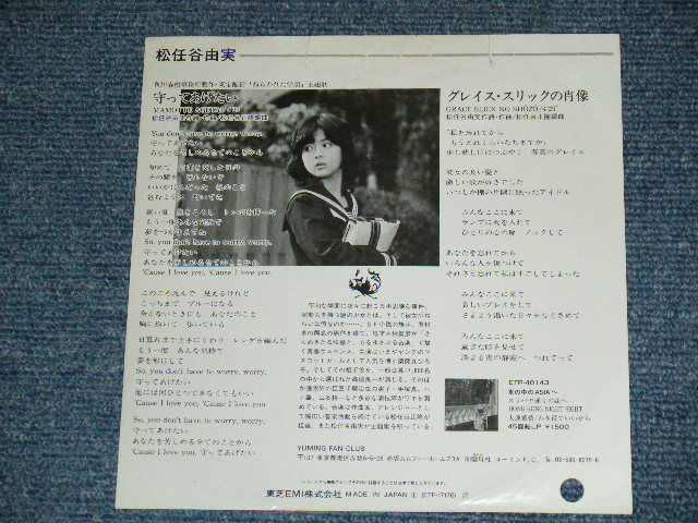 松任谷由実 YUMI MATSUTOUYA YUMING - A) 守ってあげたい B) グレイス・スリックの肖像 (Ex/Ex++ BB for PROMO, STPOFC) / 1981 JAPAN ORIGINAL "WHITELABEL PROMO" Used 7" シングル[東芝 EXPRESS TOSHIBA ETP-17176]
