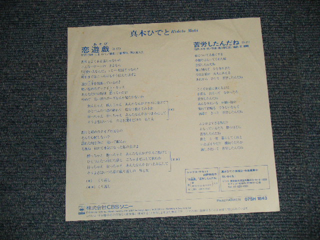 真木ひでと HIDETO MAKI (元:オックス) - A) 恋遊戯 B)苦労したんだね (Ex++/Ex++ Visual Grade) / 1986 JAPAN ORIGINAL "PROMO" "With AUTOGRAPHED/SIGNED 直筆サイン入り" Used 7" Single [CBS SONY 07SH-1843]
