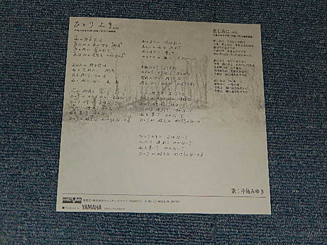 ARTIST : | 中島みゆきMIYUKI NAKAJIMA | TITLE : | A)ひとり上手 B)悲しみに |