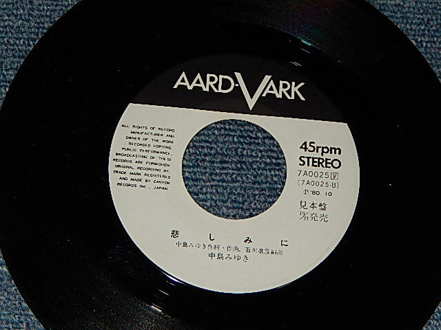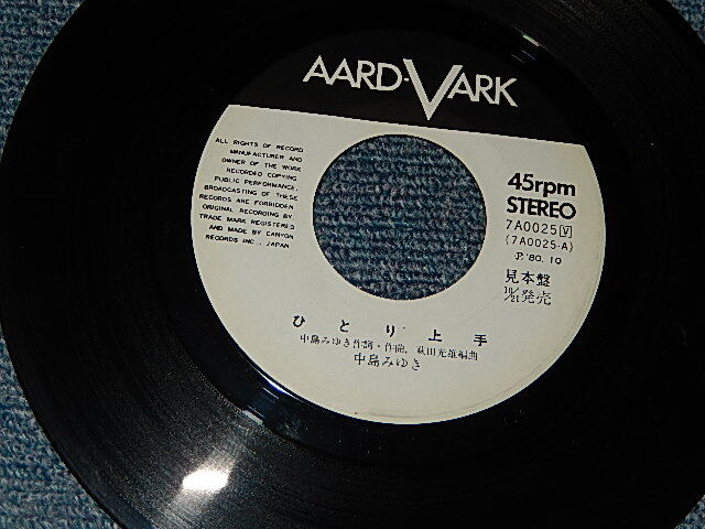 中島みゆき MIYUKI NAKAJIMA - A)ひとり上手 B)悲しみに (MINT-/MINT-, Ex++) / 1980 JAPAN ORIGINAL "WHITE LABEL PROMO" Used 7" Single [AARD-VARK / CANYON 7A0025]