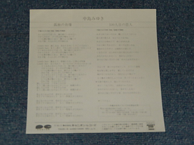 ARTIST : | 中島みゆきMIYUKI NAKAJIMA | TITLE : | A) ひとり B)海と宝石 ( |