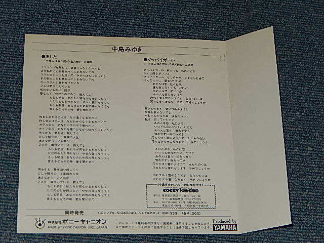 ARTIST : | 中島みゆきMIYUKI NAKAJIMA | TITLE : | A) あした B)グッバイ ガール |