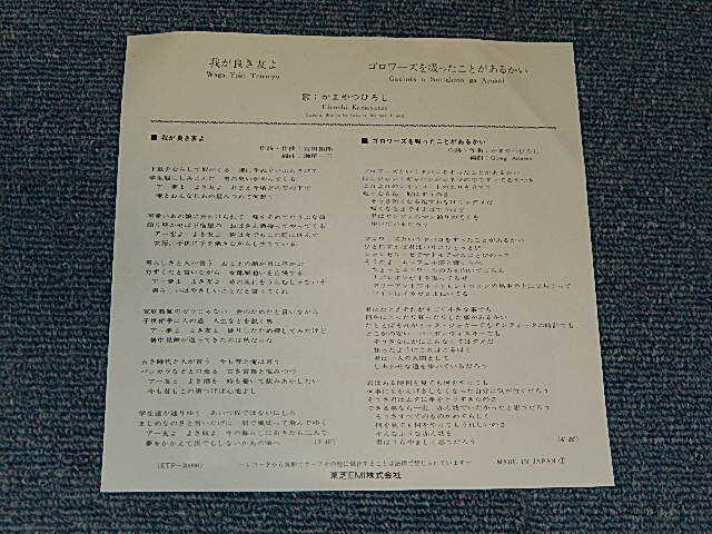 ARTIST : | かまやつひろし HIROSHI KAMAYATSU | TITLE : | A)我が良き友よ B)ゴロワーズを吸ったことがあるかい |