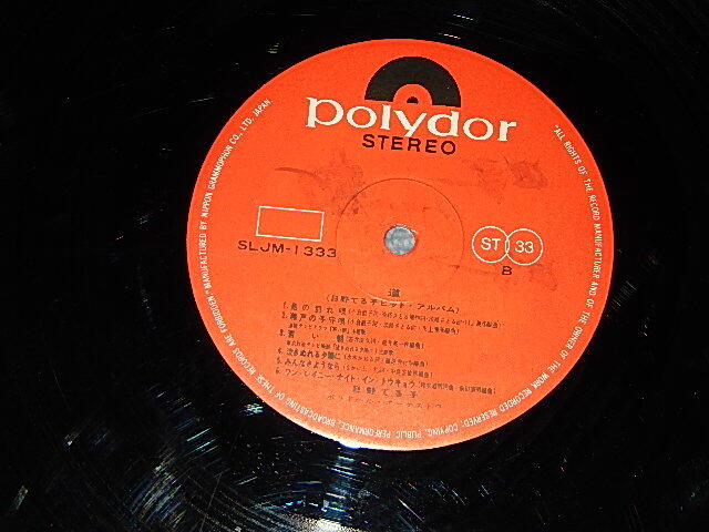 LABEL : | POLYDOR | CONDITION | JACKET | DISK | Ex | VG++ | 擦り傷たくさんあります。ノイズもかなり入ります。音飛びはありません。 | No. : | SLJM-1333 |